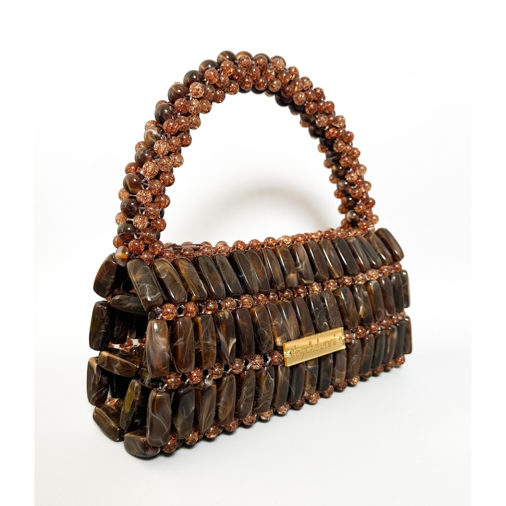 Love Coffee? She's got an upgrade. Our XL bag is bigger, louder and perfect for those who want to fit a bit more in their bags. She fits a phone! Featuring a helix handle made out of our standard coffee beads and our miniature coffee beads, she's the moment. A white pouch encases your belongings, secured with a closure zip.